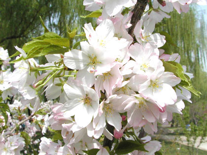 樱花色鲜艳亮丽 ,枝叶繁茂旺盛 ,是早春重要的观花树种 ,被广泛用于园林观赏 。樱花可以群植成林 ,也可植于山坡、庭院、路边、建筑物前 。盛开时节花繁艳丽 ,满树烂漫 ,如云似霞 ,极为壮观 。可大片栽植造成“花海”景观 ,可三五成丛点缀于绿地形成锦团 ,也可孤植 。樱花还可作小路行道树、绿篱或制作盆景 。