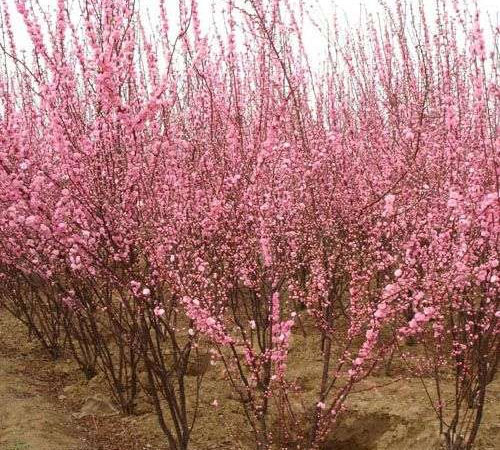 榆叶梅枝叶茂密 ,花繁色艳 。宜植于公园草地、路边 ,或庭园中的墙角、池畔等 。如将榆叶梅植于常绿树前 ,或配植于山石处 ,则能产生良好的观赏效果 。与边翘搭配种植 ,盛开时红黄相映更显春意盎然 。也可盆栽或作切花 。