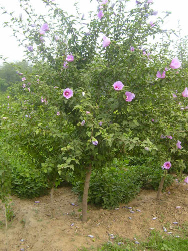 锦葵科(Malvaceae)树木或小乔木灌木 ,别名Hibiscus syriacus或Althaea syriaca 。原主要产地亚洲区东北部 ,花明艳 ,对于可以观赏草本植物多种植 。高可以达到3公尺(10呎) ,常见分不高枝 ,根系呈塔形 。花似锦葵 ,灰白色、粉紫到紫 ,叶基基本上深灰色;有些品系有重瓣花 。藤黄科(Clusiaceae)的大萼金丝桃(Hypericum calycinum)也称木槿 。